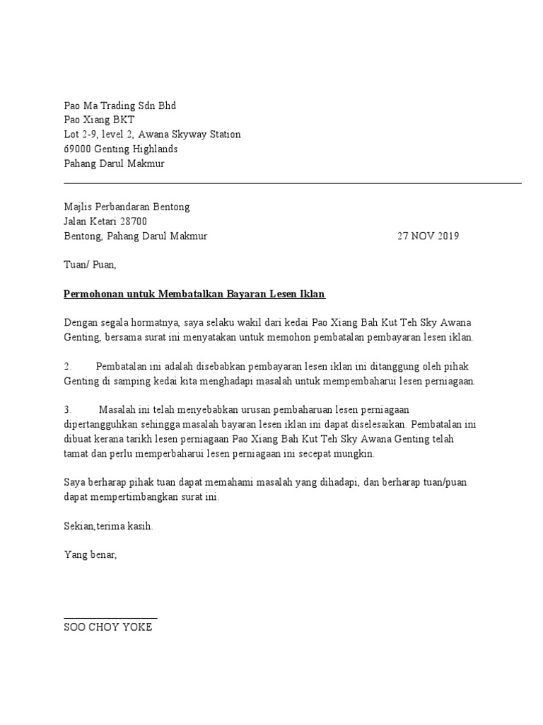 Contoh surat rasmi pembatalan pinjaman wall ppx cute766. Kontrak representasi persetujuan surat rundingan persefahaman. Contoh Surat Rasmi Permohonan Pembatalan Notis JKKP.